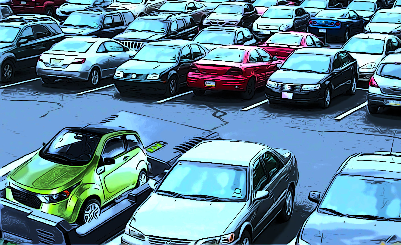 Fiktives Produkt: Der neue elektrische "Coulomb 17/85" oder eine Garage die den Coulomb neu verkauft.